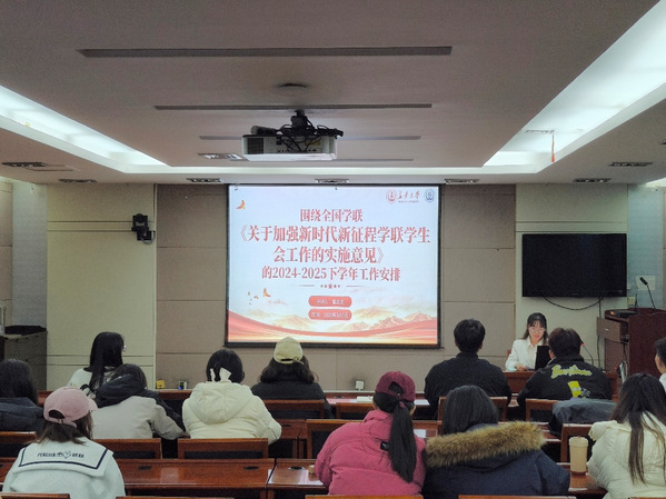 随后,研究生会执行主席霍志苗围绕2024-2025学年秋季学期工作成果回顾、新学期工作目标、新学期重点任务三方面进行了工作总结与展望。她指出,研会在队伍自身建设、学院活动、对外交流活动、学术活动、文体活动以及志愿服务六方面开展了一系列工作,并创新性地开展了“智辩风云”辩论赛、“智慧三国”益智游戏大赛、“思想驿站”三项活动,取得良好反响。同时,她也指出了活动组织协调和与同学沟通交流等方面存在的不足。她强调,研会将依据《关于加强新时代新征程学联学生会工作的实施意见》,把“对党忠诚”作为研究生会形象塑造的首要要求,保持红色思想底色,肩负起四项重点任务:加强对同学的政治引领,深入开展“我为同学做实事”项目,组织动员同学在中国式现代化建设中挺膺担当,全面加强学联学生会自身建设。最后,霍志苗以“苟日新,日日新,又日新”的精神激励全体成员,号召大家在院党委的领导和院团委的指导下,团结一心,为学院发展贡献力量。