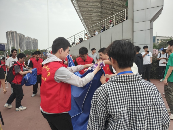 在看台区,党员志愿者化身为赛场秩序的守护者,他们穿梭于人群之中,耐心引导同学们文明观赛,维护着良好的观赛环境。党员志愿者高举旗帜、敲响战鼓,以饱满的热情和昂扬的姿态为运动健儿们送上热烈的的欢呼。面对炎炎烈日,他们毫无怨言,始终坚守岗位,用真诚的微笑和热情的服务为师生们解决各类问题。
