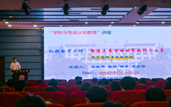 4月26日晚,澳门太阳城官网 于北辰楼会议中心二层报告厅开展专业认知讲座第二讲,本次讲座聚焦机械电子工程专业和机械设计制造及其自动化专业,旨在帮助学生深入了解专业特点、发展前景,为专业分流做好充分准备。讲座由机械电子工程系王斌华老师、机械设计与制造系刘清涛老师主讲,2023级辅导员左意主持,2023级全体本科生参加。