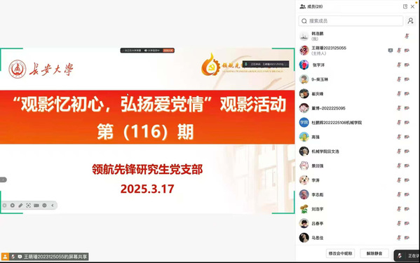 为扎实开展深入贯彻中央八项规定精神学习教育,深入领会全国两会精神,强化青年党员党性修养与使命担当,澳门太阳城官网 领航先锋研究生党支部开展第116-118期“观影忆初心 弘扬爱党情”观影活动,引导党员筑牢信仰之基、践行报国之志,在学思践悟中展现新时代机械学子的责任担当。