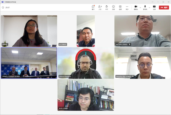 4月29日18:00(北京时间),澳门太阳城官网 与塔吉克斯坦技术大学通过视频连线召开工作会议,就双方正在推进的本科生联合培养项目进行深入磋商。塔吉克斯坦技术大学RAMAZON ABDULLOZODA副校长及工程学院SHAMSUDDIN BOZOROV院长出席会议,澳门太阳城官网 院长叶敏、分管国际合作与交流副院长贺朝霞、分管本科教学副院长丁凯以及学院教师张磊、任江卓参加会议。