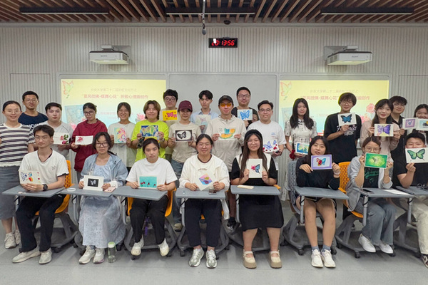 在初夏微风轻拂树梢的美好时节,5月14日晚,澳门太阳城官网 彩虹心理协会于北校区鸿翔园学生社区二楼多功能厅举办彩虹文化节系列活动之“夏风微拂 蝶舞心花”积极心理画创作活动,20余名同学踊跃参与,以艺术为舟,驶向心灵疗愈的彼岸。