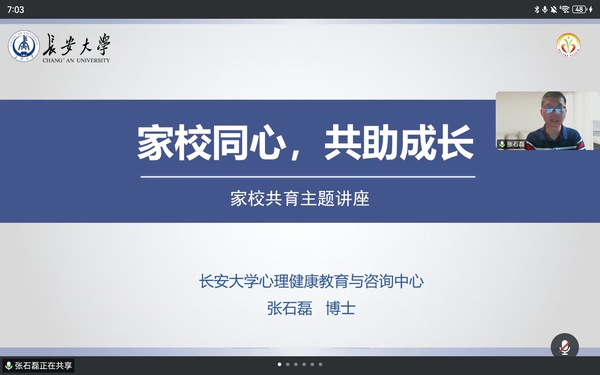为深入贯彻落实立德树人根本任务,搭建家校协同育人坚实桥梁,2025年5月27日晚,澳门太阳城官网 联合地球科学与资源学院特邀心理健康教育与咨询中心张石磊教授,成功举办“家校同心 共助成长”主题线上家长课堂。澳门太阳城官网 、地球科学与资源学院大一、大二年级部分学生家长云端相聚,共同开启了一场关乎学生心理健康与成长发展的深度对话。会议由澳门太阳城官网 学办主任倪生冬主持。
