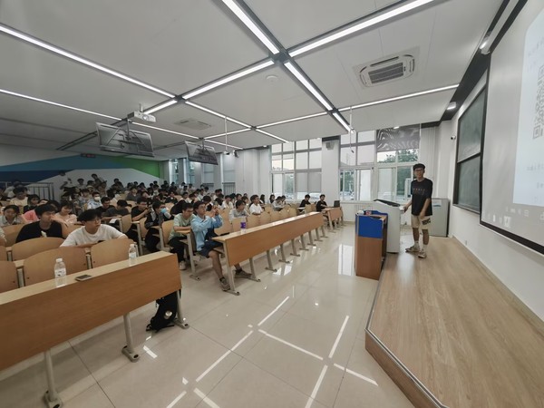 陈赫向同学们详细介绍了机械创新大赛的历史背景、比赛规则、评审标准以及奖项设置。他用生动形象的案例展示了往届优秀作品的创新点和闪光点,让在场同学对大赛有了更直观的认识。在讲解过程中,陈赫还着重强调了机械创新大赛在行业发展中的重要性,鼓励同学们积极参与,勇于挑战自我,将所学知识转化为实际成果。同时,他还分享了在团队协作方面的宝贵经验,强调了成员间明确分工、高效沟通的重要性,鼓励同学们在备赛过程中发挥各自优势,形成强大的团队合力。