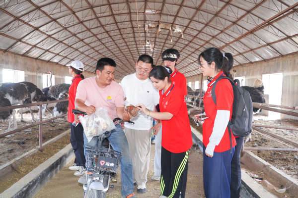 从戈壁拓荒到产业兴边,兵团大地上正续写着新时代的发展答卷。7月18日下午,实践队来到83团园艺三连的葡萄种植园。兵团职工介绍,现在葡萄正处于上色期,一亩葡萄地能产一吨多的果,去年卖到了5到6块钱一公斤。从最初的戈壁滩到如今的“甜蜜产业”,葡萄藤上结出的不仅是果实,更是兵团人“抱团发展、勇于创新”精神的结晶。在83团天鑫鸵鸟养殖基地,基地工作人员介绍,鸵鸟从孵化到成年大概需要一年半时间,鸵鸟全身都是宝,合作社不光搞养殖,更注重产品深加工,已做出鸵鸟肉干、风干肉等特色产品,还在开发鸵鸟油做成女士护肤品。天鑫鸵鸟养殖基地是兵团响应乡村振兴战略、推动产业多元化发展的成果,带动了周边职工群众增收致富。