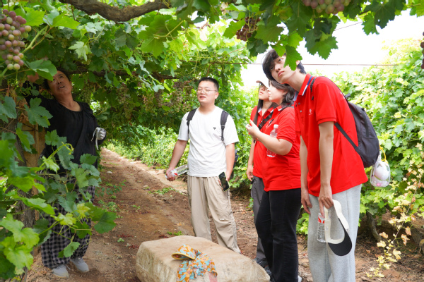 实践队员了解葡萄生长情况