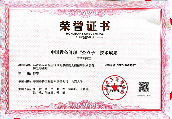 2025年10月15日至17日,由中国设备管理协会主办,《中国设备工程》杂志社、《电力设备市场》杂志社、中国设备管理协会品牌建设与技术应用委员会、景津装备股份有限公司等单位联合承办的2025(第六届)中国设备管理新趋势交流会在山东德州成功举办。澳门太阳城唯一正版授权网站 教师参与的“沥青路面水损害区域的多维度无损精准识别装备研发与应用”项目荣获中国设备管理“金点子”技术成果“特等奖”。