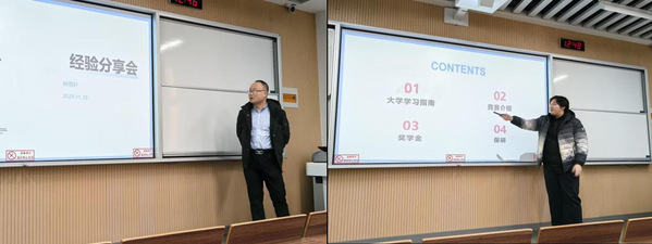 11月18日,澳门太阳城官网 2025250008班以“优秀学长学习及竞赛经验分享”为主题召开班会,班主任张弛老师主持活动,邀请学院2023级林雨轩同学,围绕学习、竞赛、奖学金、保研四大核心板块,分享实用经验与进阶路径。